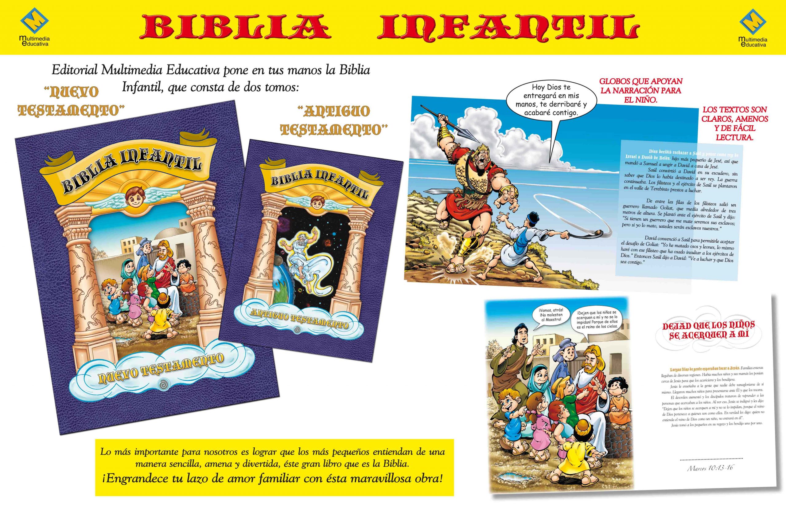 - Textos adaptados pensando en los pequeños y jóvenes, al final de cada uno, se señala la cita del pasaje por si quieren ir a la Sagrada Biblia y profundizar más en él.